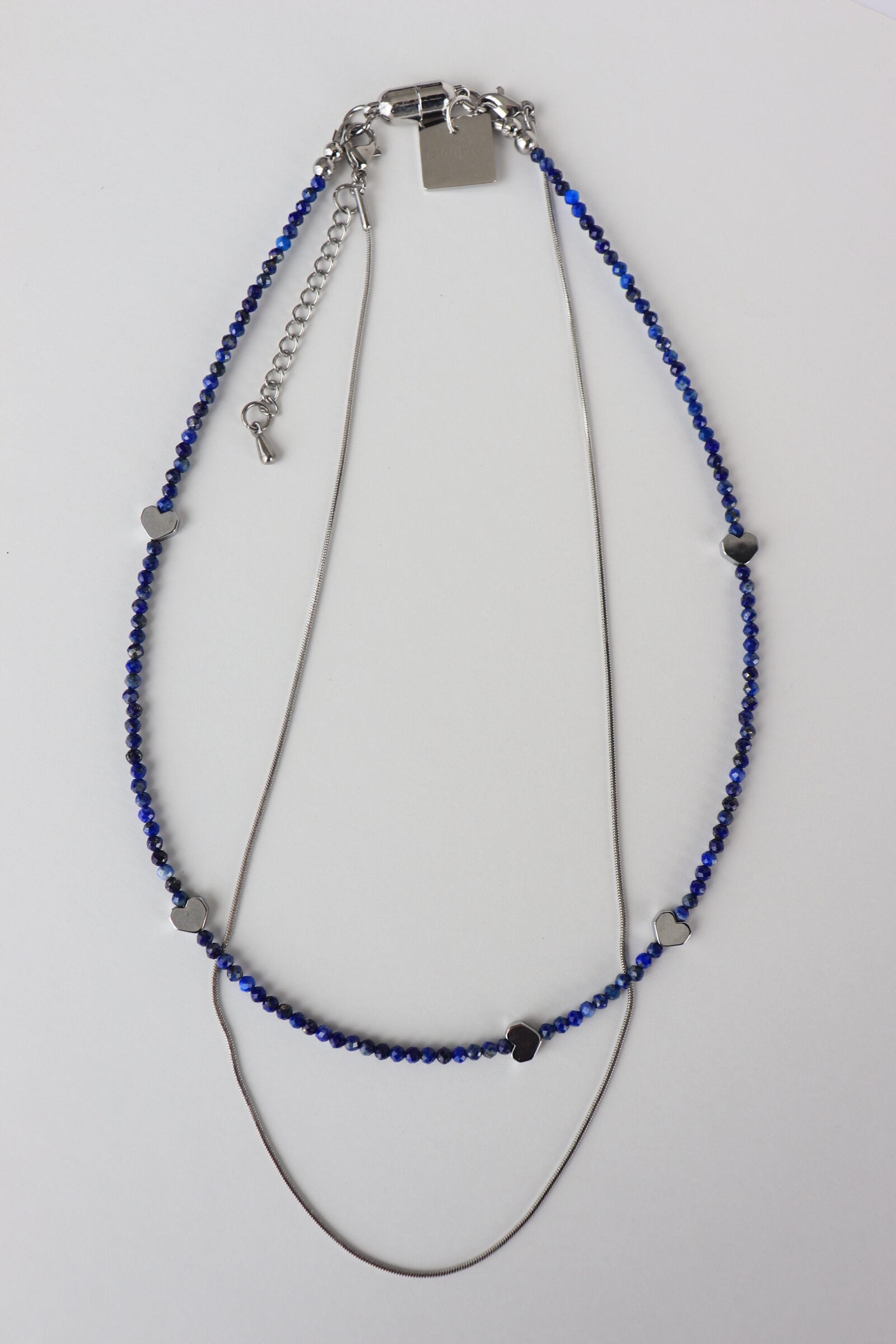 【3WAY】Lapis Lazuli & Heart Layered Choker / Stainless Snake Chain