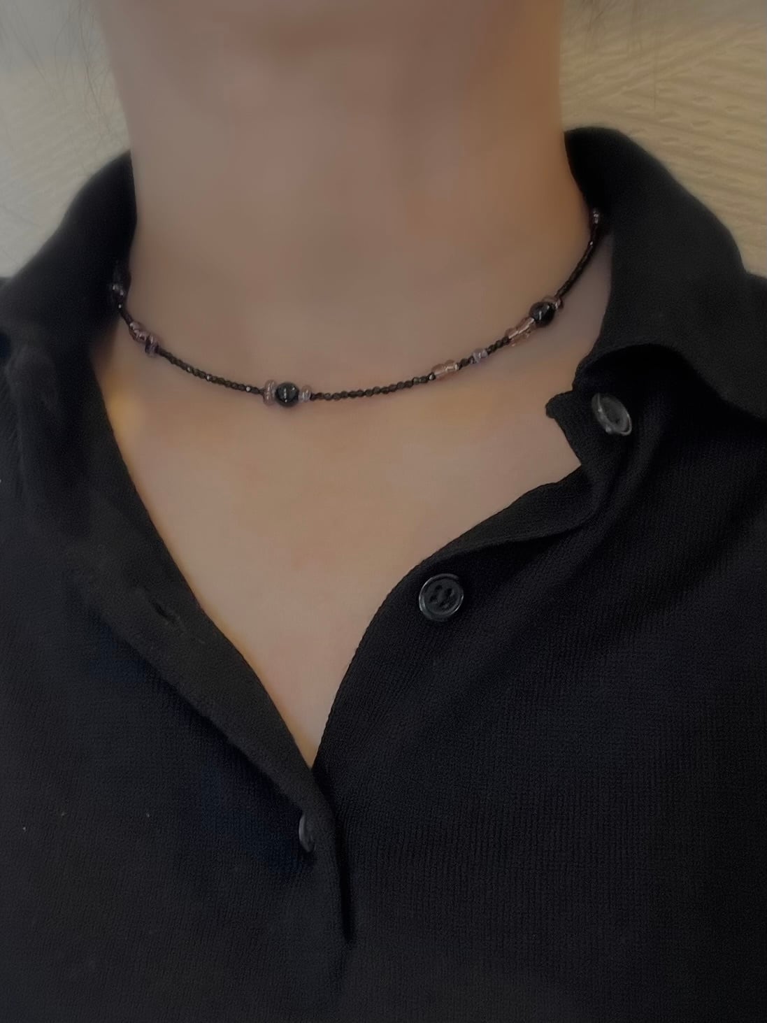 艶やかな「ブラックオニキス」と、繊細なカットが光を弾く「ブラックスピネル」を贅沢に組み合わせた、大人のためのチョーカーです。